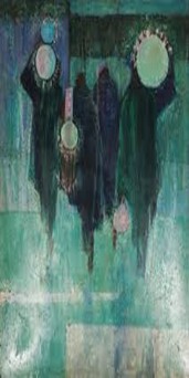 Yusuf Grillo’s paintings are celebrated because they blend modern art techniques with traditional African themes, Use bold geometric forms and deep blue color palette, reflect Yoruba cultural influences.