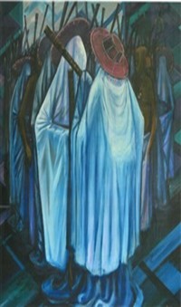 Yusuf Grillo became widely known for his distinctive blue-dominated palette and stylized figurative compositions, often inspired by Yoruba culture, architecture, and everyday Nigerian life. His works have been widely exhibited both locally and internationally and are held in several important collections, including those of the National Gallery of Art.