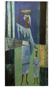 - ‘’Mother and Child’’, widely regarded as Grillo’s most iconic work. It reflects themes of African motherhood, family, and cultural identity, notable for its dominant blue tones, a color style that became Grillo’s signature.